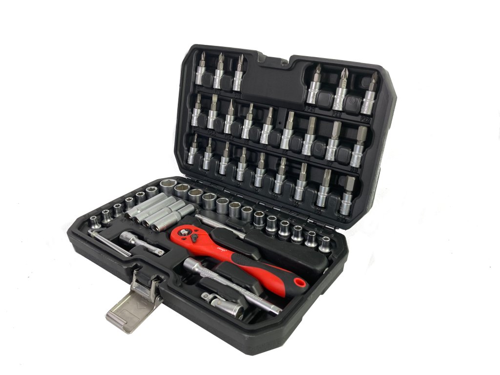 Set nasadnih ključeva od 1/4" sadrži 56 dijelova , izrađenih od visokokvalitetnog krom-vanadij čelika . Set uključuje račvu s izdržljivim mehanizmom račve. Set sadrži širok izbor nasadnih ključeva (veličine od 4 do 14 mm), uključujući nastavke za svjećice i razne nastavke (ravne, križne, šesterokutne, Torx).
