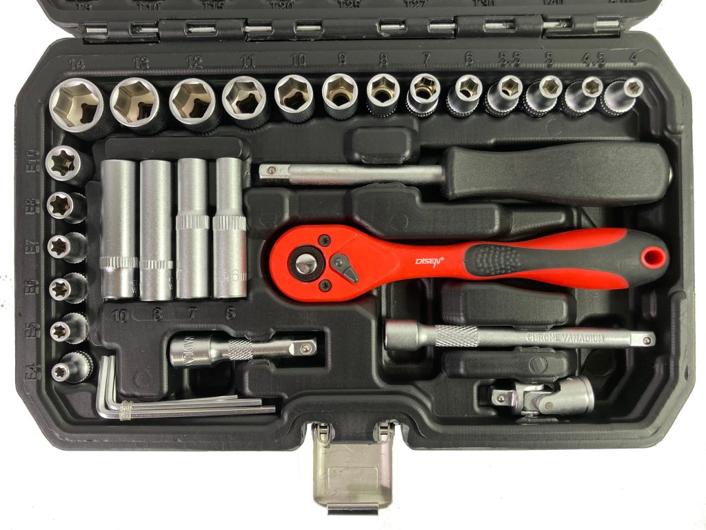 - 13 kom. nasadnih ključeva od 1/4": 4; 4,5; 5; 5,5; 6; 7; 8; 9; 10; 11; 12; 13; 14 mm