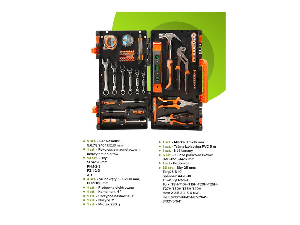 Set alata u kutiji. Izvrsno izrađena kutija za alat. Cijeli set je izrađen s naglaskom na čvrstu kvalitetu.