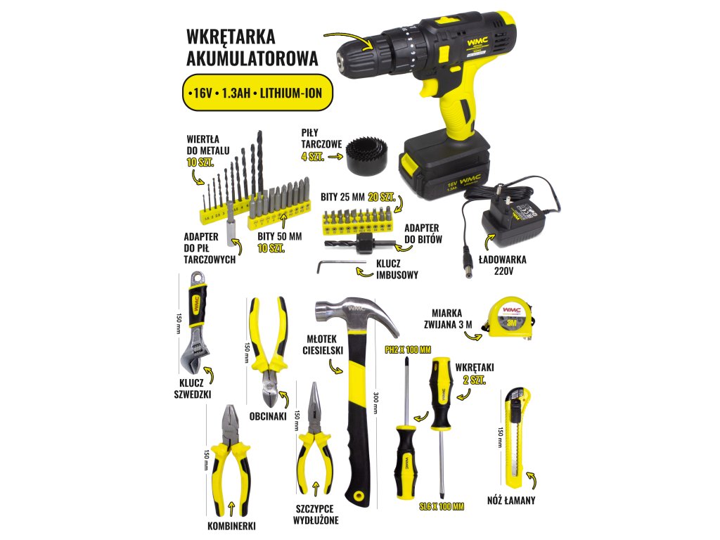 Asortiman WMC Tools uključuje odvijače, kliješta, ključeve, svrdla, pile, brusilice i mnoge druge alate, kao i specijalizirane setove i dodatke za profesionalne i hobi projekte. Svaki alat izrađen je s naglaskom na preciznost, dugotrajnost i jednostavnost korištenja, što omogućuje maksimalnu učinkovitost i udobnost pri radu.