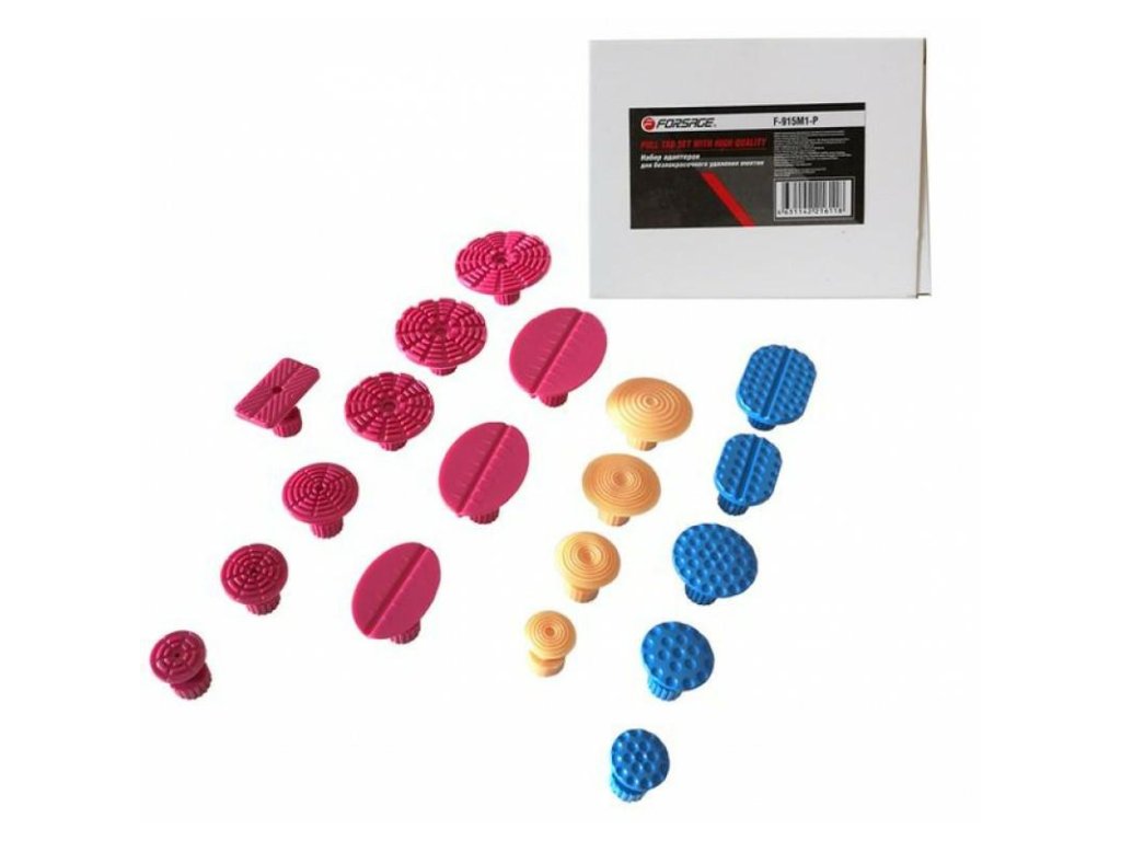 - 19× adaptera/produžetaka, uključujući vrlo male produžetke glave — omogućuju uklanjanje čak i najmanjih udubljenja, korisni su i za konačno uklanjanje većih udubljenja