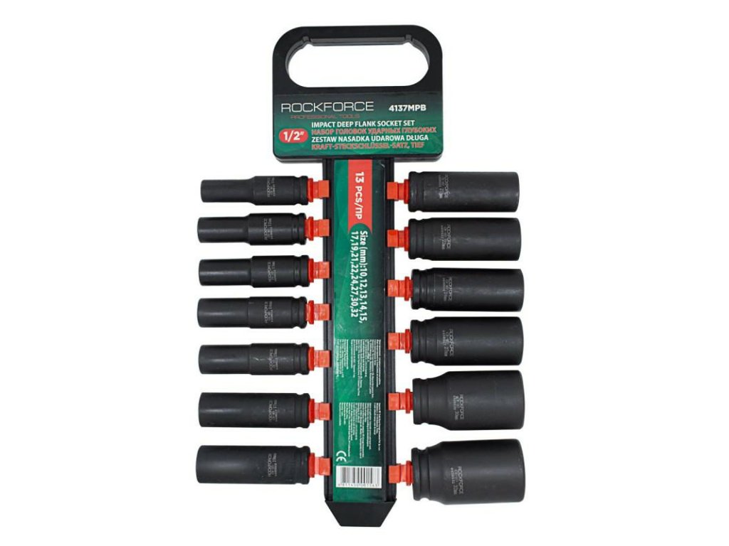 ROCKFORCE 1/2" set udarnih nasadnih ključeva dubine 10-32 mm