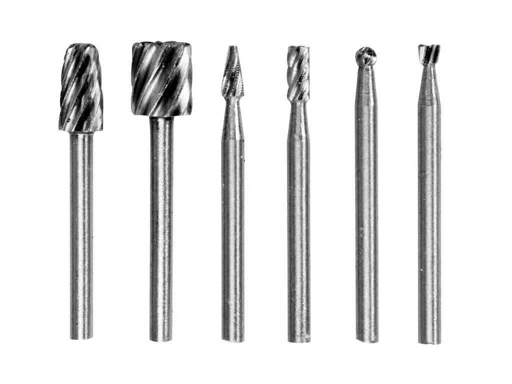 Set od 6 nastavaka za obradu čelika i aluminija. Precizna izrada od visokokvalitetne brze čelične legure HSS 4241 osigurava izvrsnu kvalitetu i brzinu obrade materijala. Montažni nastavak s ø 3,2 mm za korištenje s mini brusilicama.