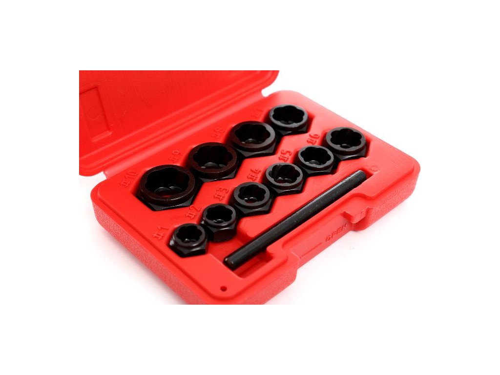 Set sadrži izvlakače u 10 veličina: 9, 10, 11, 12, 13, 14, 15, 16, 17 i 19 mm.