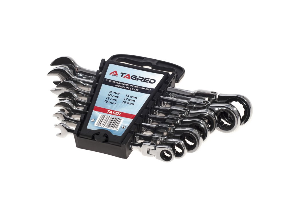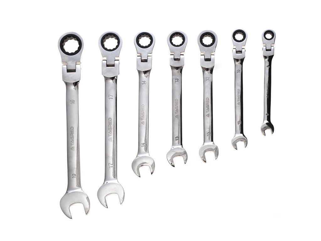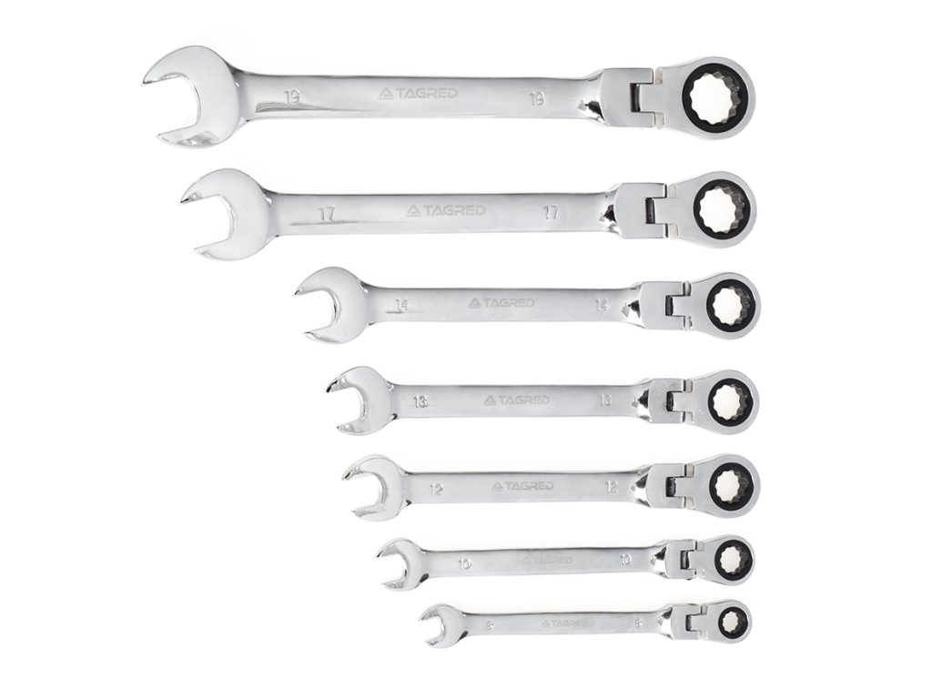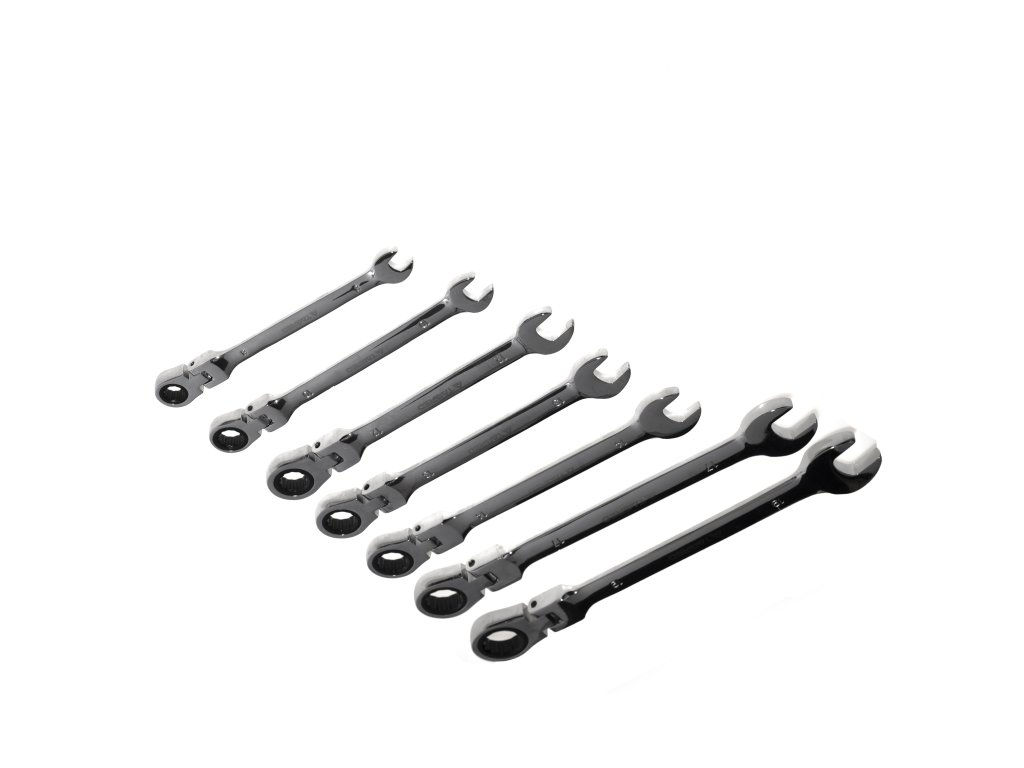 Set ključeva ravnih i viljuškastih s čegrtaljkom - 8-19 mm, 7 kom.