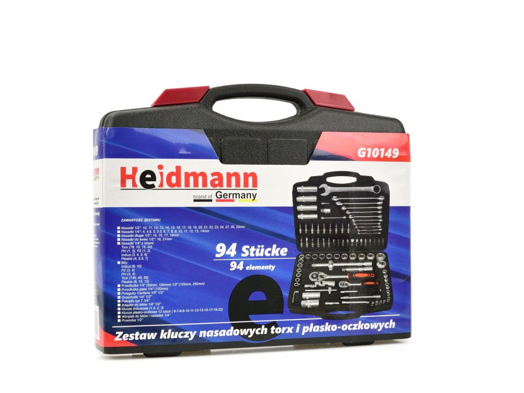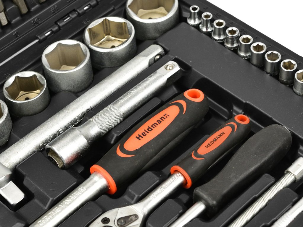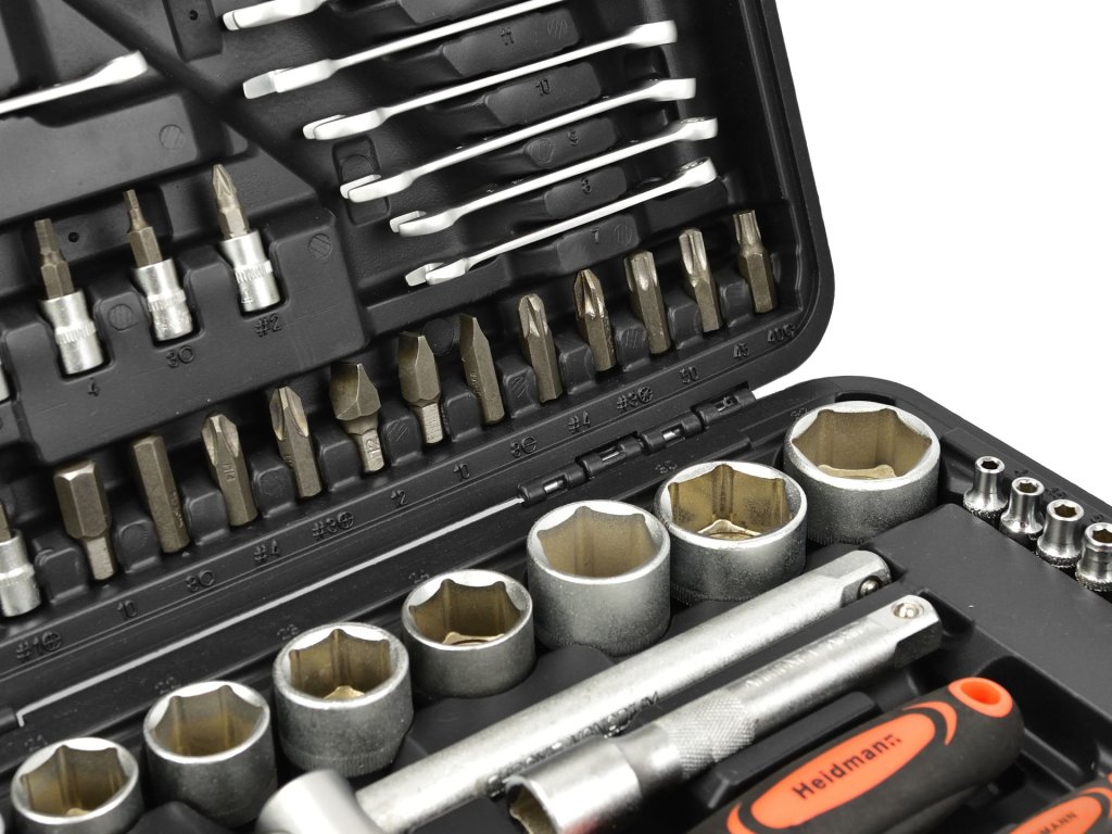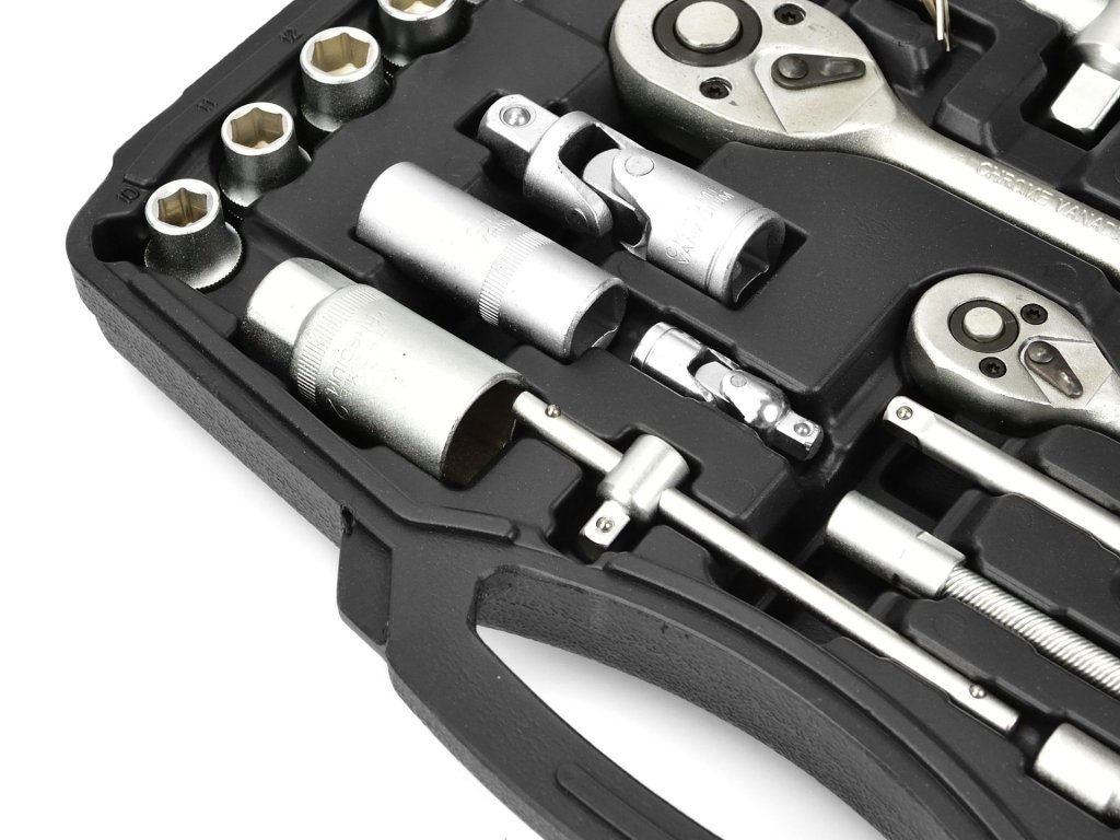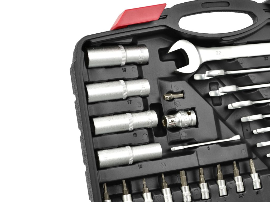 - 18x ključevi 1/2": 10, 11, 12, 13, 14, 15, 16, 17, 18, 19, 20, 21, 22, 23, 24, 27, 30, 32 mm