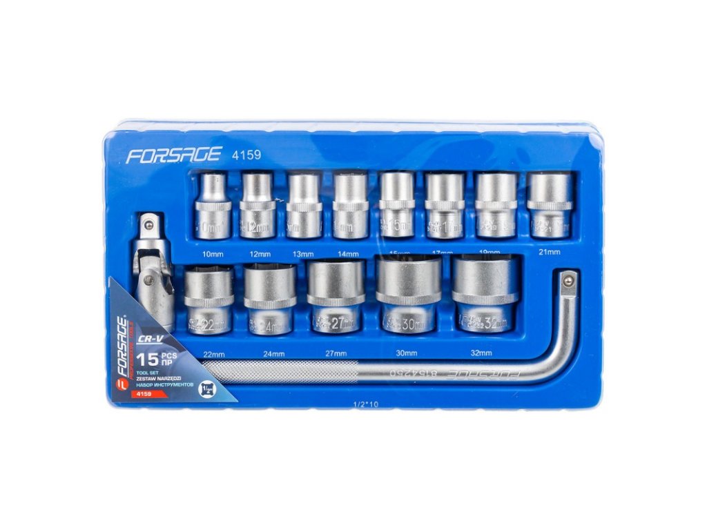 Set nasadnih ključeva 1/2" 10-32 mm, šesterokutni, 15 komada.