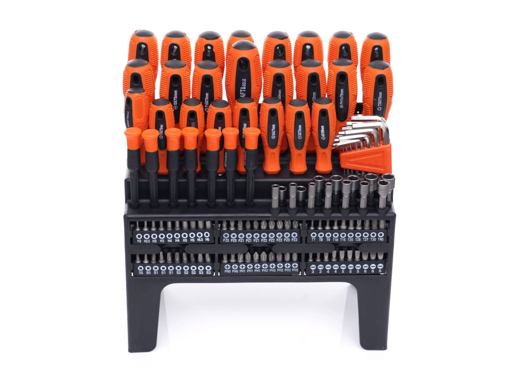 Korištenje visokokvalitetnih materijala pri izradi odvijača i bitova produžuje njihovu dugotrajnost. Sada sadrži 122 komponente.
