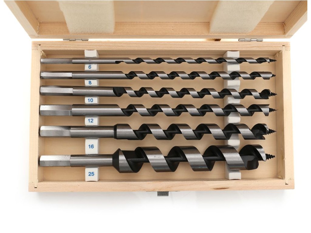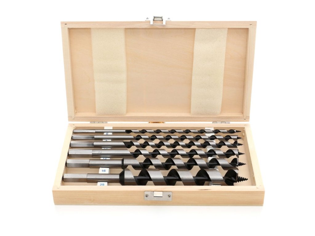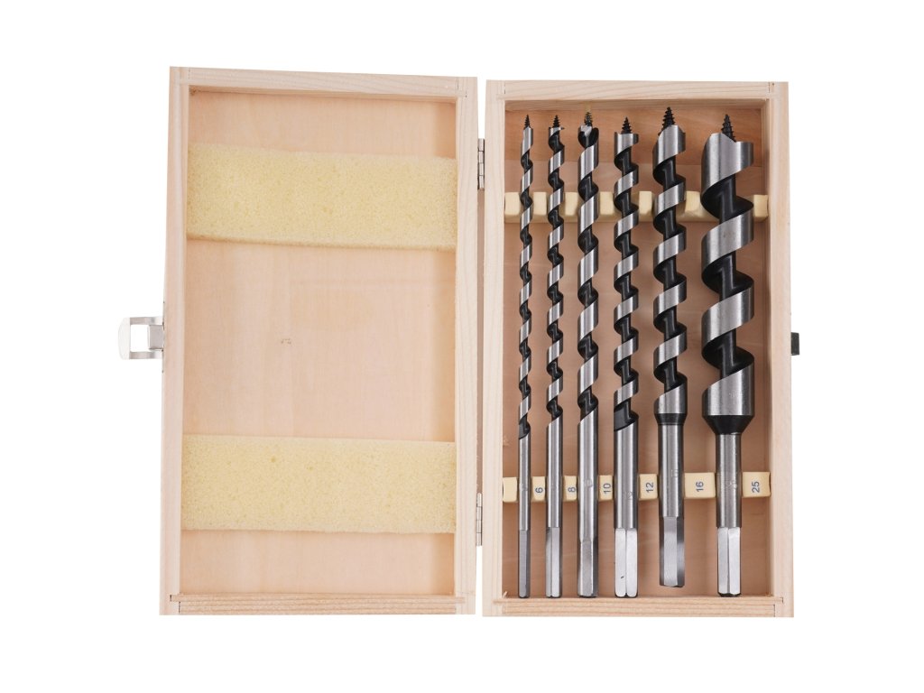 Set svrdla za drvo, 230 mm, 6 kom. idealan je izbor za sve koji traže kvalitetne alate za precizno bušenje. Ova set nudi visoku kvalitetu i precizno bušenje, što osigurava samovlačeća vrh s navojem. Kaleni glavni i pomoćni oštrici jamče dug vijek trajanja, dok spirala tipa Lewis omogućava brzo odvođenje strugotine.
