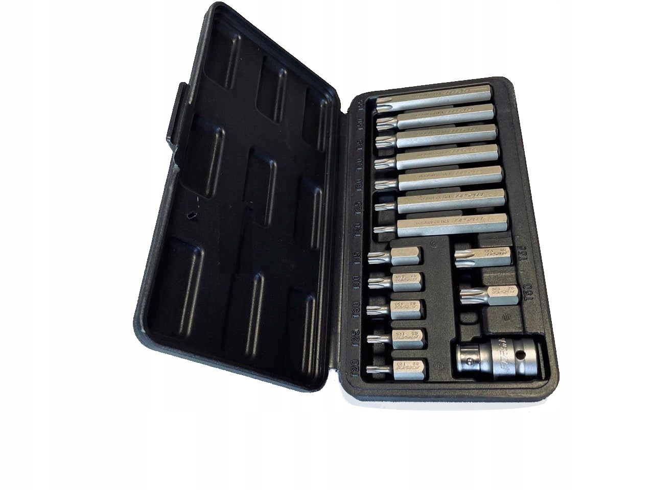 Profesionalni set bitova dizajniran za odvrtanje specijalnih vijaka tipa Torx. Raznolikost bitova omogućuje vam obavljanje širokog raspona poslova u profesionalnim mehaničkim i autoservisnim radionicama. Bitovi su izrađeni od visokokvalitetnog alatnog legiranog čelika S2, koji se odlikuje visokom tvrdoćom HRC 58-62, ujednačenom finozrnatom strukturom materijala, otpornošću na uvijanje, visokim momentom pritezanja - 21,8 Nm i izvrsnim kaljenjem. Set je pakiran u praktičnoj plastičnoj kutiji za transport i skladištenje.