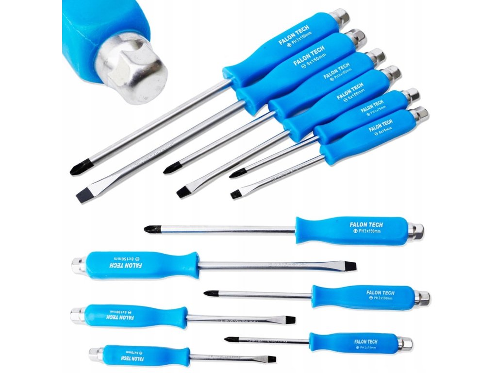 Profesionalni set odvijača namijenjen zahtjevnim poslovima gdje su potrebni snaga, izdržljivost i mogucnost upotrebe cekica. Svaki odvijac opremljen je ojacanim metalnim vrhom na kraju drske za sigurno udaranje i šesterokutnim tijelom koje omogucuje upotrebu s kljucem za povecanje momenta. Idealno za mehanicare, obrtnike i kucne majstore.