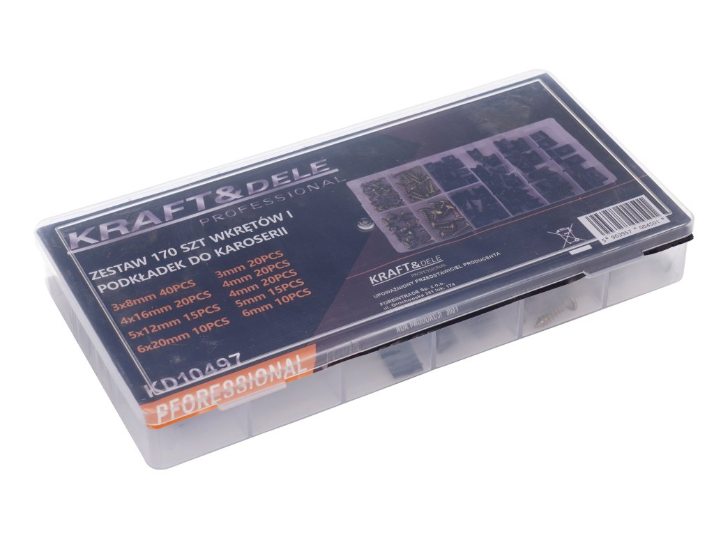 Sset vijaka i podložaka za karoseriju marke Kraft&Dele, model KD10497, izrađen je od materijala vrhunske kvalitete. Idealno za svakog majstora.