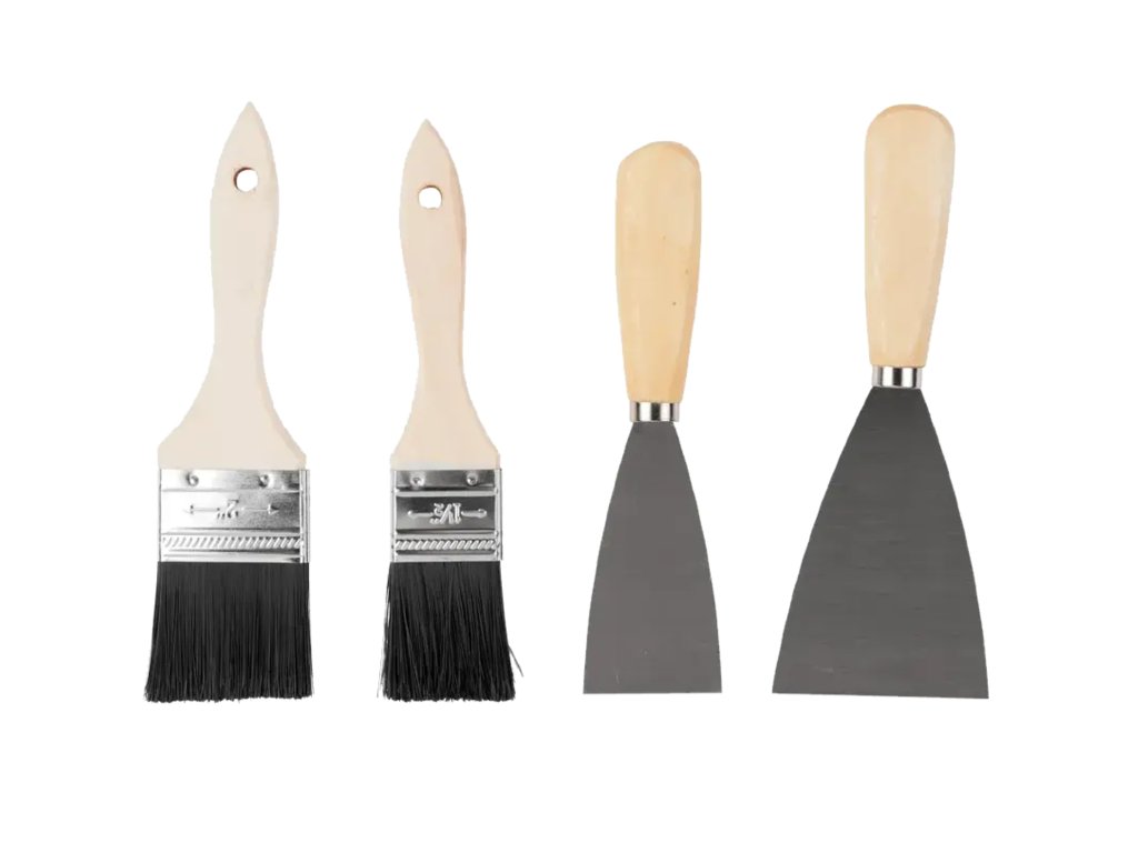 Profesionalni set alata za bojanje — 4 dijela (2 kista + 2 lopatice) — nezamjenjiv je set koji je savršen i za manje popravke i za zahtjevnije završne projekte. Idealan je za profesionalne slikare i žbukare , kao i za one koji obavljaju „uradi sam“ poslove kod kuće ili u vrtu.