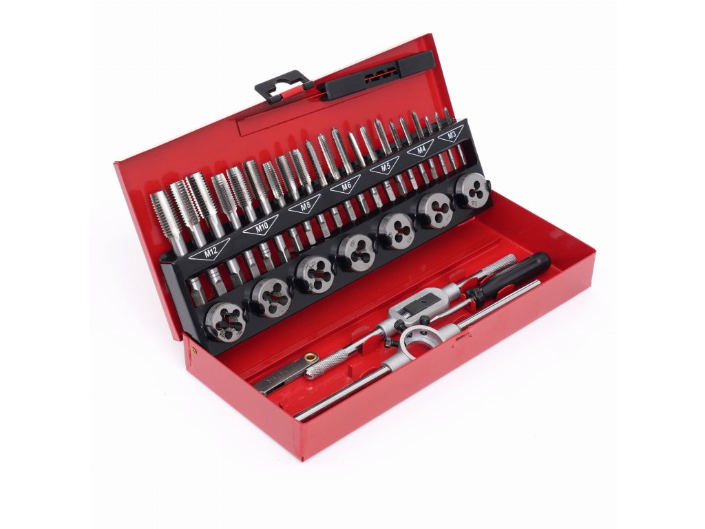 Profesionalni set navojnika i glavica navojnika marke Kraft & Dele s oznakom KD10090. Udoban za korištenje, vrlo dobro izrađeni alati, neophodni u svakoj radionici, kućnoj garaži ili radnom pogonu. Set služi za popravak navojnih spojeva svih vrsta u većini materijala. Izrađeno od visokokvalitetne tvrdo kaljene čelika.