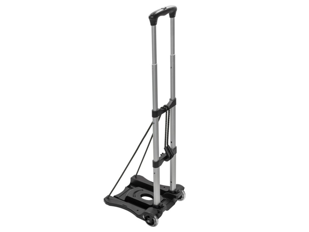 - Sofisticirane značajke : siguran hvat transportirane robe zahvaljujući integriranom zateznom remenu za veću sigurnost | kontinuirano podešavanje visine teleskopske ručke može se jednostavno upravljati jednim gumbom, što vam omogućuje podešavanje ručke kako biste zaštitili svoja leđa.