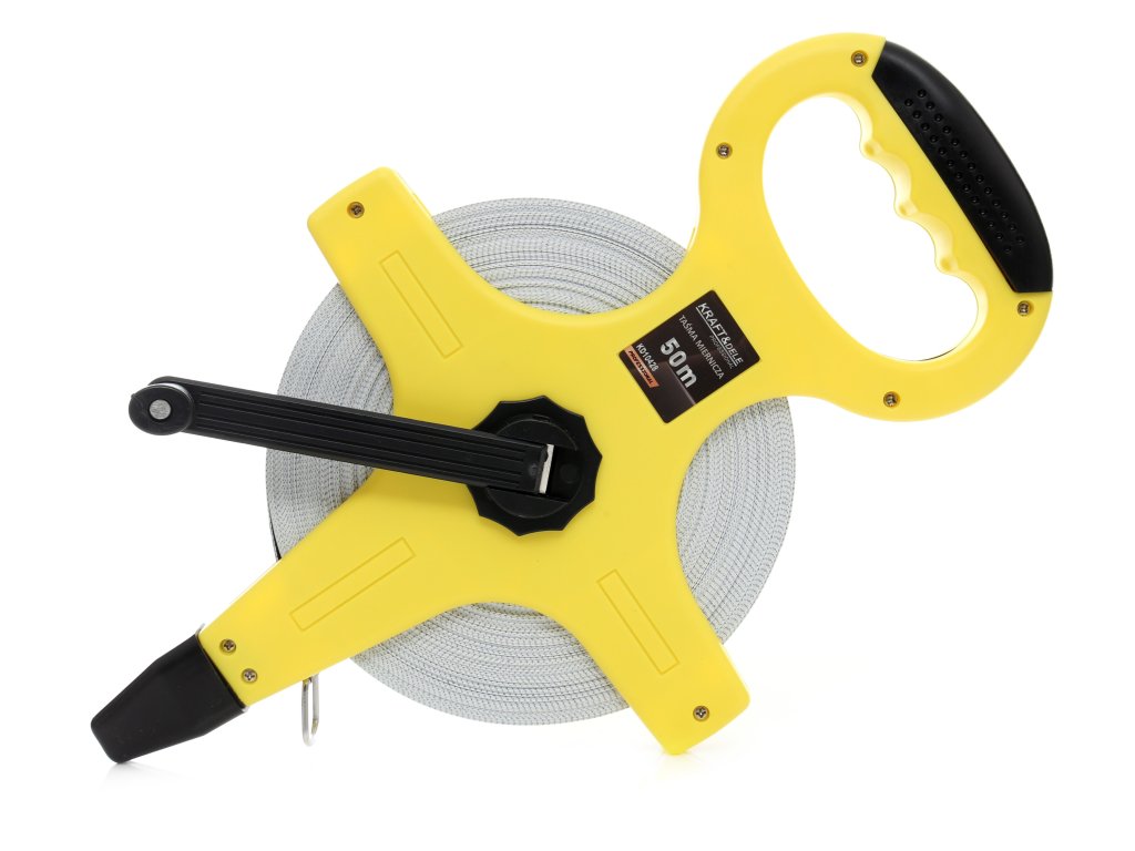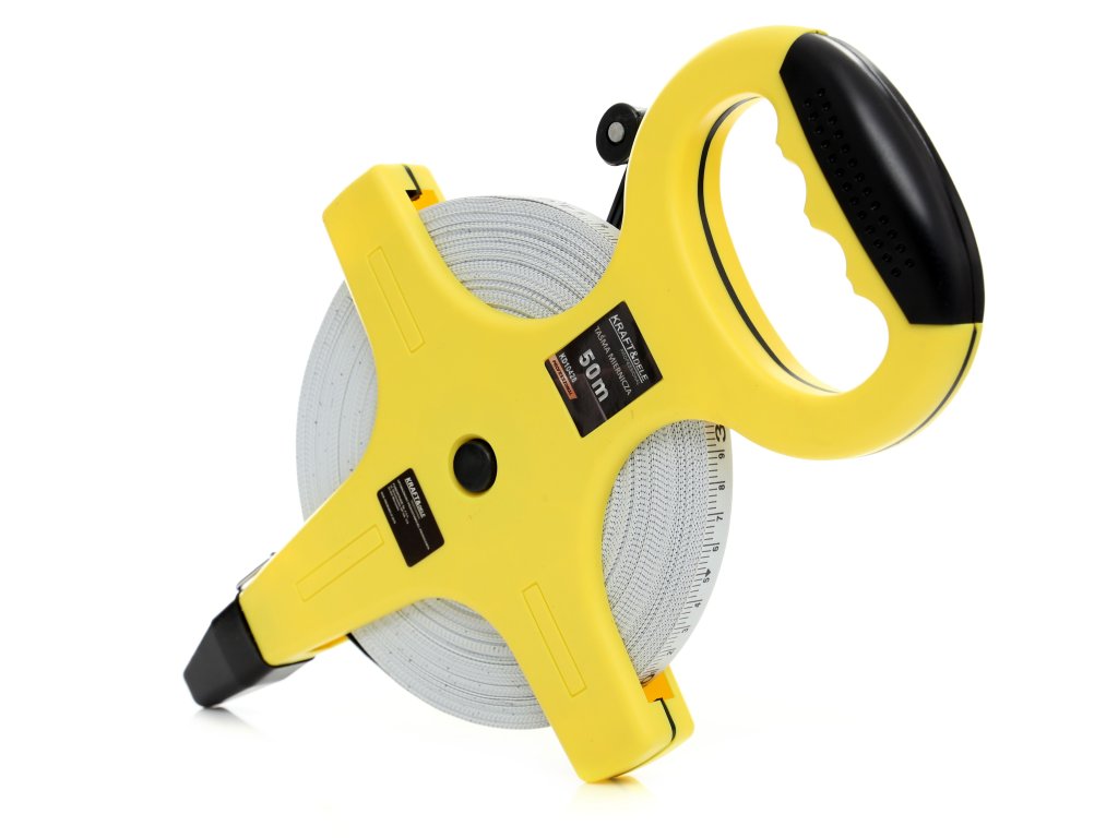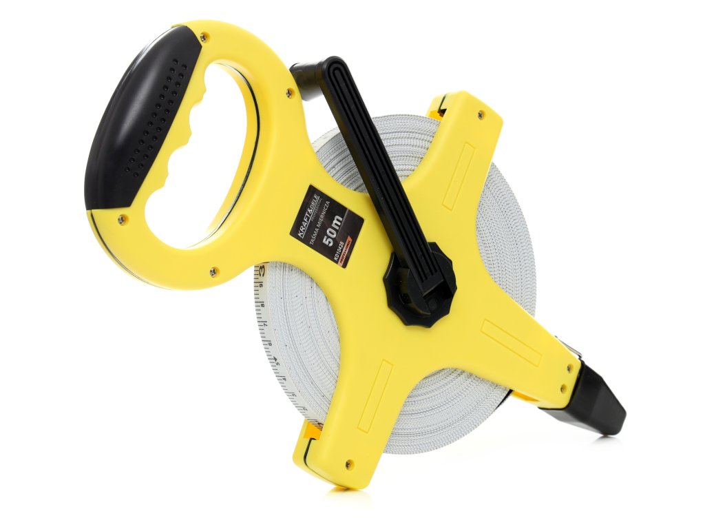 Stakloplastični metar 30 m KD10427. Profesionalna mjerna vrpca marke Kraft&Dele. Otporna na vremenske uvjete, završena špicom za zabijanje u tlo, što olakšava samostalno mjerenje. Također je koristan konac pričvršćen na kraju vrpce radi lakše manipulacije jednim korisnikom. Ergonomiju rada osigurava udobna ručka i glatko namotavajuća cívka.