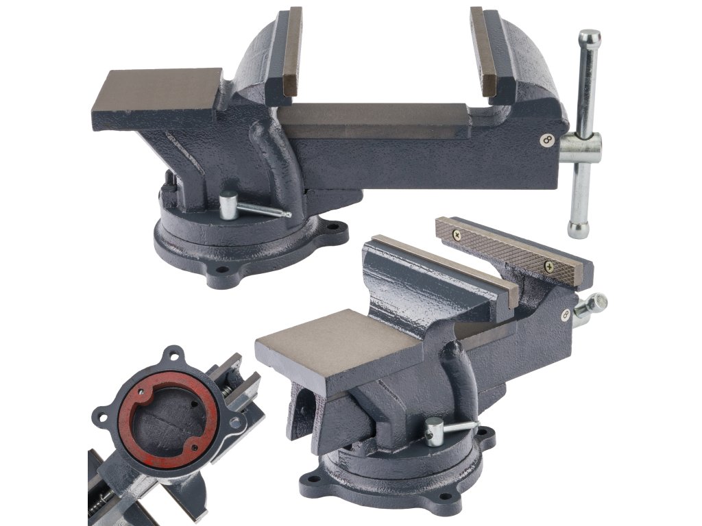 Vijci s obje strane stege, opremljeni štangama, omogućuju pritisak i blokiranje stege u željenom položaju i kutu okretanja.