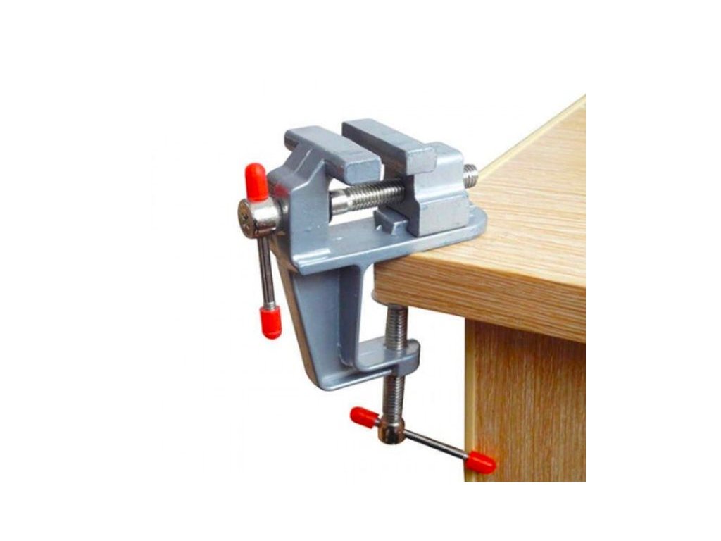 Stolni škripac 35 mm KD10681. Mali stolni škripac marke Kraft&Dele, neophodan alat za stabilizaciju i čvrsto učvršćivanje obrađivanih materijala pri odvrtanju, rezanju, brušenju i bušenju.