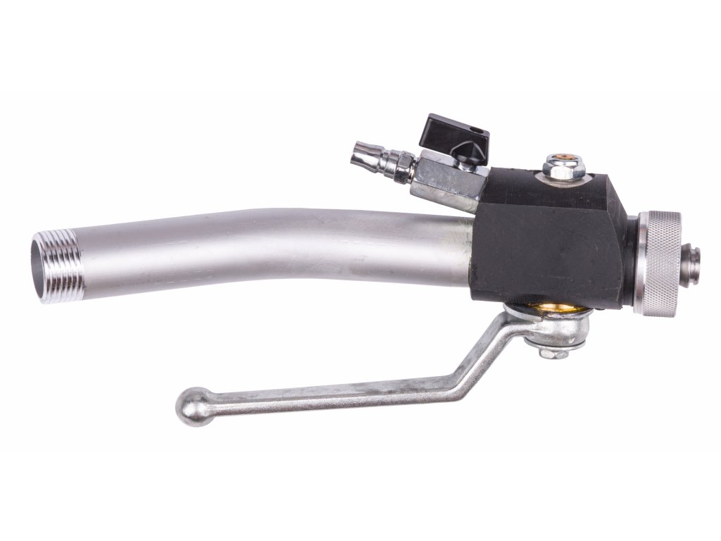 Profesionalni pištolj za prskanje izrađen od izdržljivog materijala, opremljen mesingastim kuglastim ventilom za primjenu žbuke i ventilom za komprimirani zrak.
