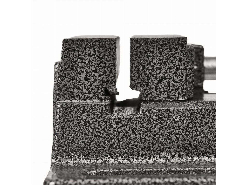 Kutni strojni škripac marke Kraft&Dele, model KD10740, je nezamjenjiv alat za radove koji zahtijevaju stabilno i čvrsto fiksiranje obrađivanih materijala pri otpuštanju, rezanju, brušenju i bušenju. Povlačni vijak opremljen je gumbom s žljebom i slobodnom uzicom.