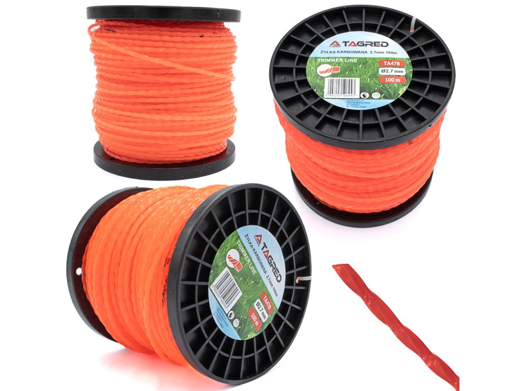 Struna za sječenje za benzinski trimer, uvijena, nazubljena, 2,7 mm x 100 m, velika bobina, snažna