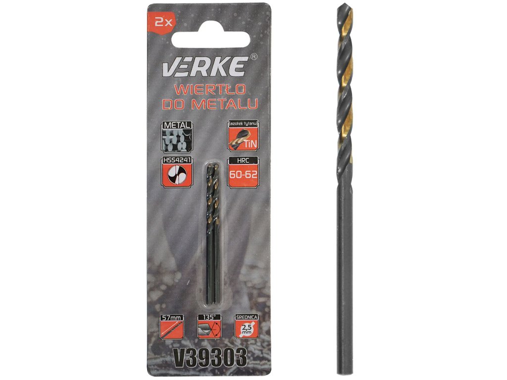 Svrdlo za metal HSS s titanovim premazom 2,5 mm - 2 kom Verke V39303