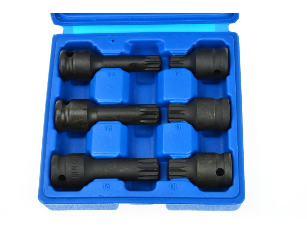 Sada udarnih ključeva spline namijenjena je za korištenje u vozilima grupe VAG, uključujući modele kao što su VW LT, Transporter, Golf, Sharan, a također i zadnje kočione čeljusti Porsche Cayenne.