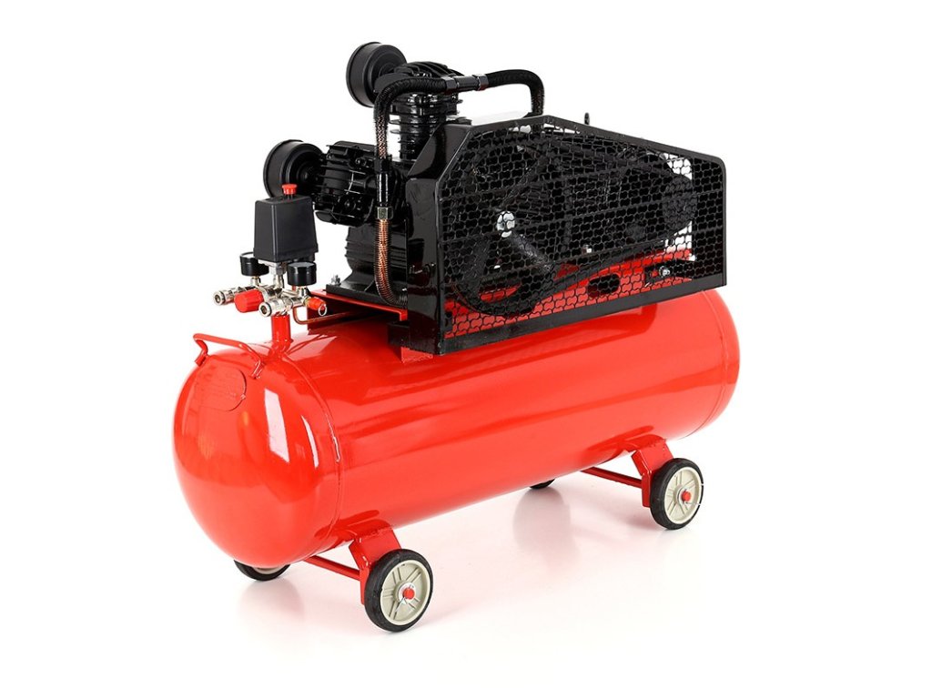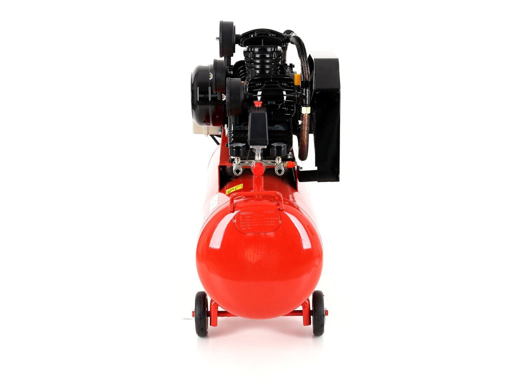 | Specifikacije: • Uljem podmazan kompresor KD405 100 L 400 V • Ručka za nošenje, prekidač tlaka • Sigurnosni ventil • Usisni filtr • Manometar i brzi spoj za regulaciju radnog tlaka • Regulator tlaka • Povratni ventil • Uljem podmazana klipna pumpa • Kontrola razine ulja pomoću mjernog štapa • Veliki kotači za lak prijenos • Ventil za odvod vode |