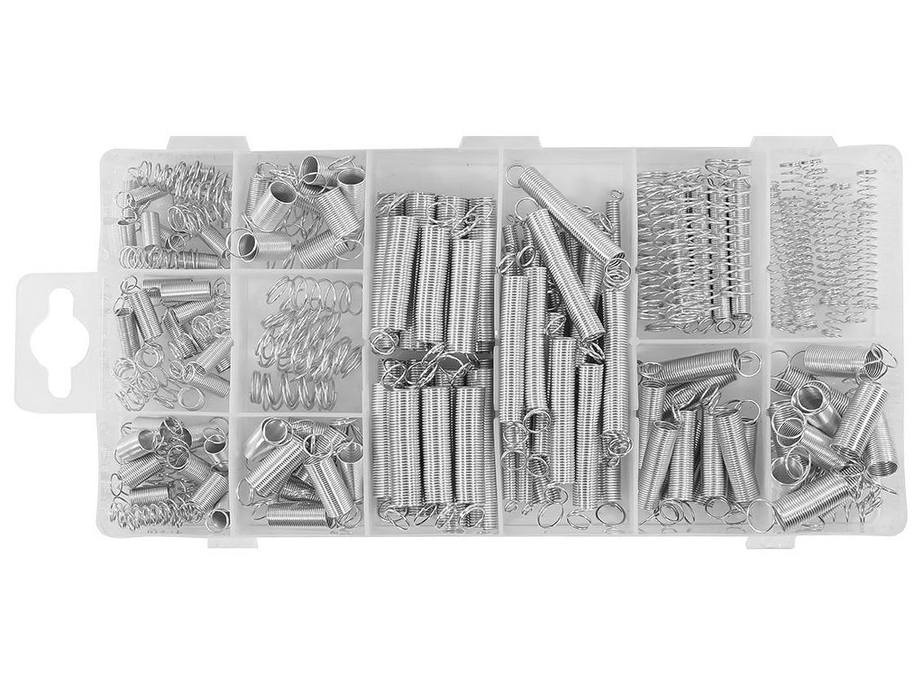 VERKE SET 200 KUSOVA OPRUGE V06718 sadrži 200 različitih veličina. Opruge su namijenjene kako za pritisak, tako i za istezanje. Sve je pohranjeno u praktičnom organizacijskom kutiji.