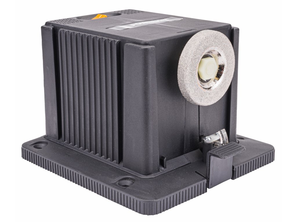 Ovaj oštrač je opremljen kotačem prekrivenim dijamantnim prahom, što jamči veću izdržljivost i duži vijek trajanja u odnosu na tradicionalne kamenčiće koji se koriste u oštračima.
