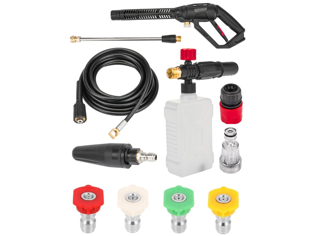 Brze spojke omogućuju jednostavno i sigurno priključivanje crijeva i pribora. Set uključuje zamjenjivu turbo-dyzu, 4 nehrđajuće mlaznice i široko kutnu mlaznicu, što osigurava visoku radnu kapacitetu i učinkovito održavanje velikih površina, kao što su terase ili fasade zgrada. Ne oklijevajte i investirajte u proizvod RED TECHNIC – uvjerite se u kvalitetu već danas!