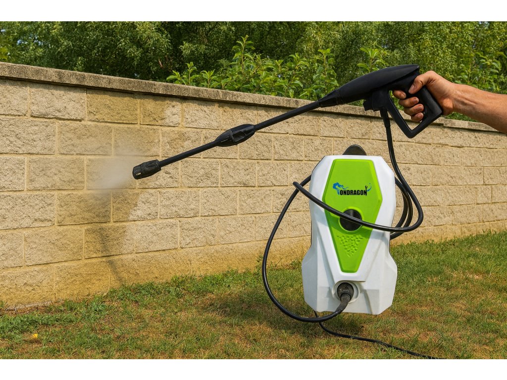 Snažni Ondragon visokotlačni perač idealan je pomagač za brzo i učinkovito čišćenje. Zahvaljujući motoru od 2000 W i radnom tlaku od 120 bara (do 230 bara s turbo mlaznicom), lako uklanja čak i tvrdokornu prljavštinu s popločanih ploča, terasa, vozila ili vrtnog namještaja.
