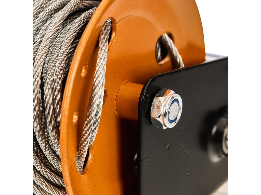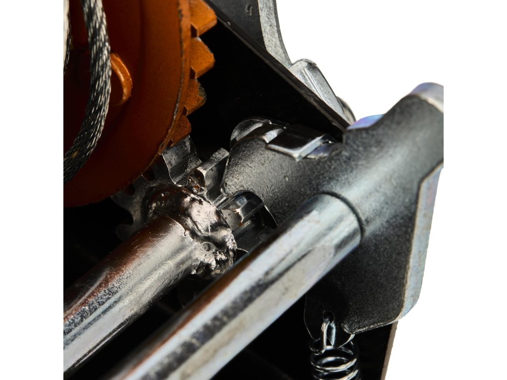 Vitlo s užetom s ručkom 1200 lbs KD1311 – Ručni navijač izrađen od visokokvalitetnih materijala koji osiguravaju njegovu odgovarajuću otpornost i pouzdanost. Opremljeno je snažnom odlitom kukom s vratnom oprugom. Za upravljanje uređajem služe ručne ručke zajedno sa zupčastim mehanizmom. Uređaj jamči sigurno i bez problema podizanje i spuštanje predmeta.