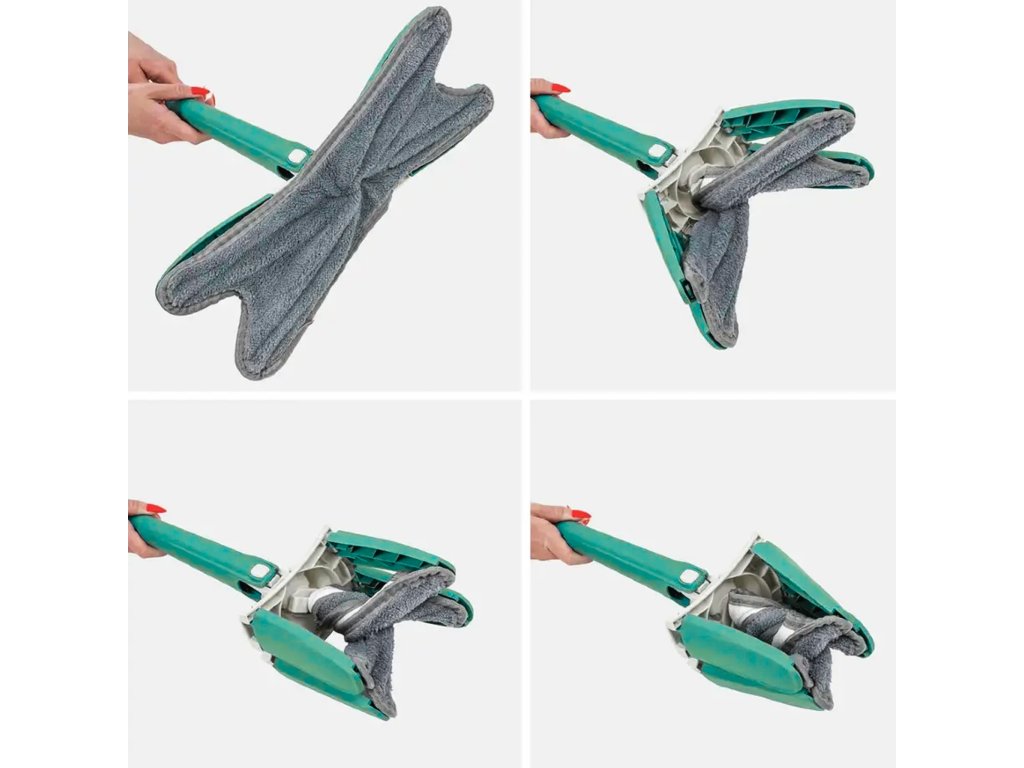 - Automatsko cijeđenje u obliku slova X — nema više prljavih ruku! Jedan pokret aktivira mehanizam koji učinkovito uklanja višak vode i prljavštine s krpe.