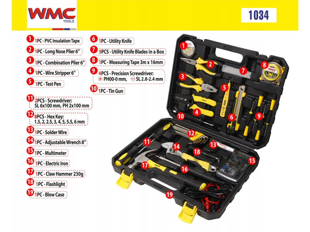 Asortiman WMC Tools uključuje odvijače, kliješta, ključeve, svrdla, pile, brusilice i mnoge druge alate, kao i specijalizirane setove i dodatke za profesionalne i hobi projekte. Svaki alat izrađen je s naglaskom na preciznost, dugotrajnost i jednostavnost korištenja, što omogućuje maksimalnu učinkovitost i udobnost pri radu.