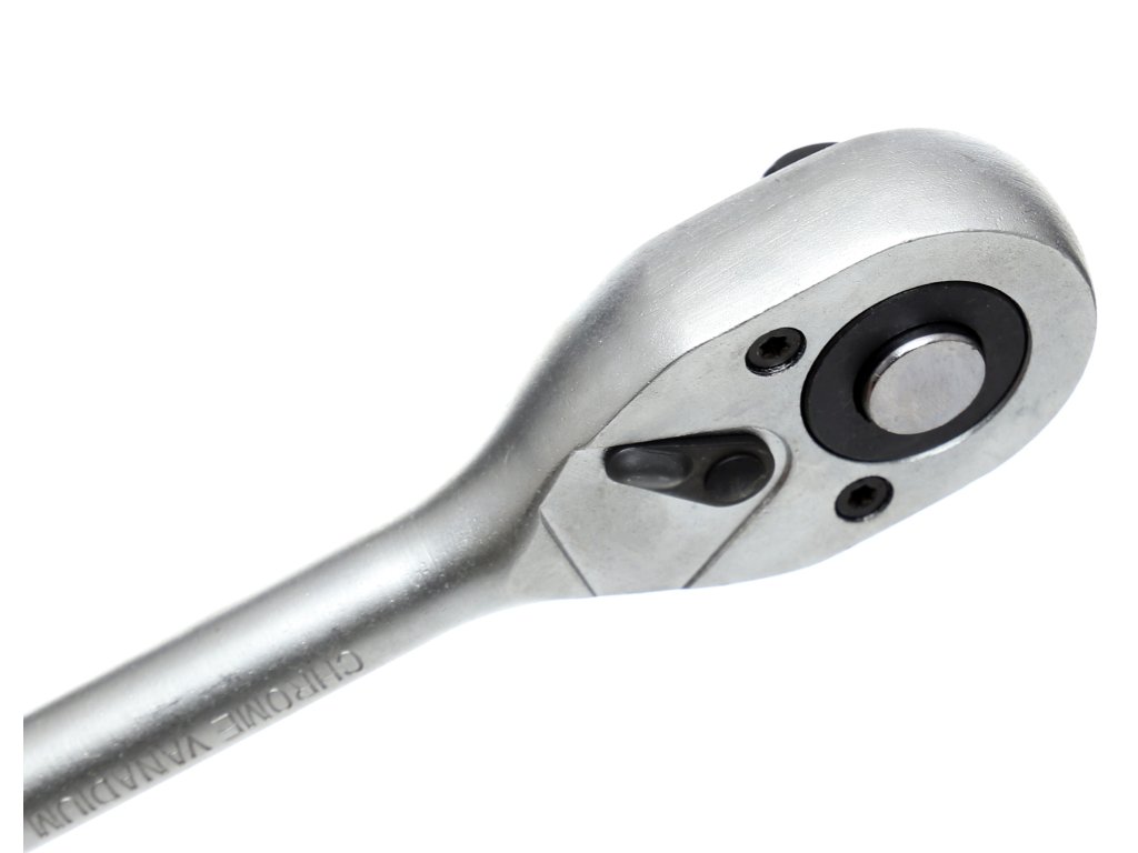 Jaka zakrivljena čegrtaljka 1/2" izrađena od kvalitetnog CrV čelika (krom-molibden) jamči izvrsnu otpornost i dugotrajnost. Ovaj inovativni nasadni ključ s pomakom opremljen je mehanizmom sa 24 jaka zuba koji učinkovito prenosi veliki zakretni moment na četvrtasti nastavak. Prekidač za promjenu smjera okretaja L/P smješten je izravno u glavi alata, a dopunjen je funkcionalnim gumbom za jednostavno otpuštanje nastavaka.
