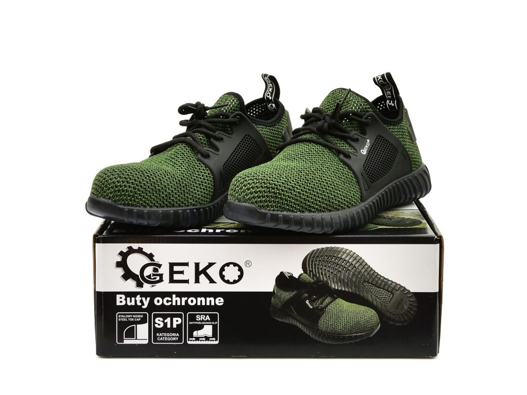 Visokokvalitetna lagana i prozračna zaštitna obuća sportskog kroja renomirane marke GEKO. Ova obuća poznata je po svojoj preciznoj izradi, koja osigurava visok komfor tijekom nošenja. Iako imaju sportski dizajn, cipele ispunjavaju normu EN ISO 20345 i zadovoljavaju sve zahtjeve obuće s oznakom S1P SRA. Za razliku od cipela klase S3, nemaju povećanu vodootpornost, ali su mnogo prozračnije zahvaljujući tekstilnom gornjem dijelu. Ove karakteristike čine ih idealnom obućom za rad u zatvorenim skladištima i tijekom proljetnih i ljetnih mjeseci.